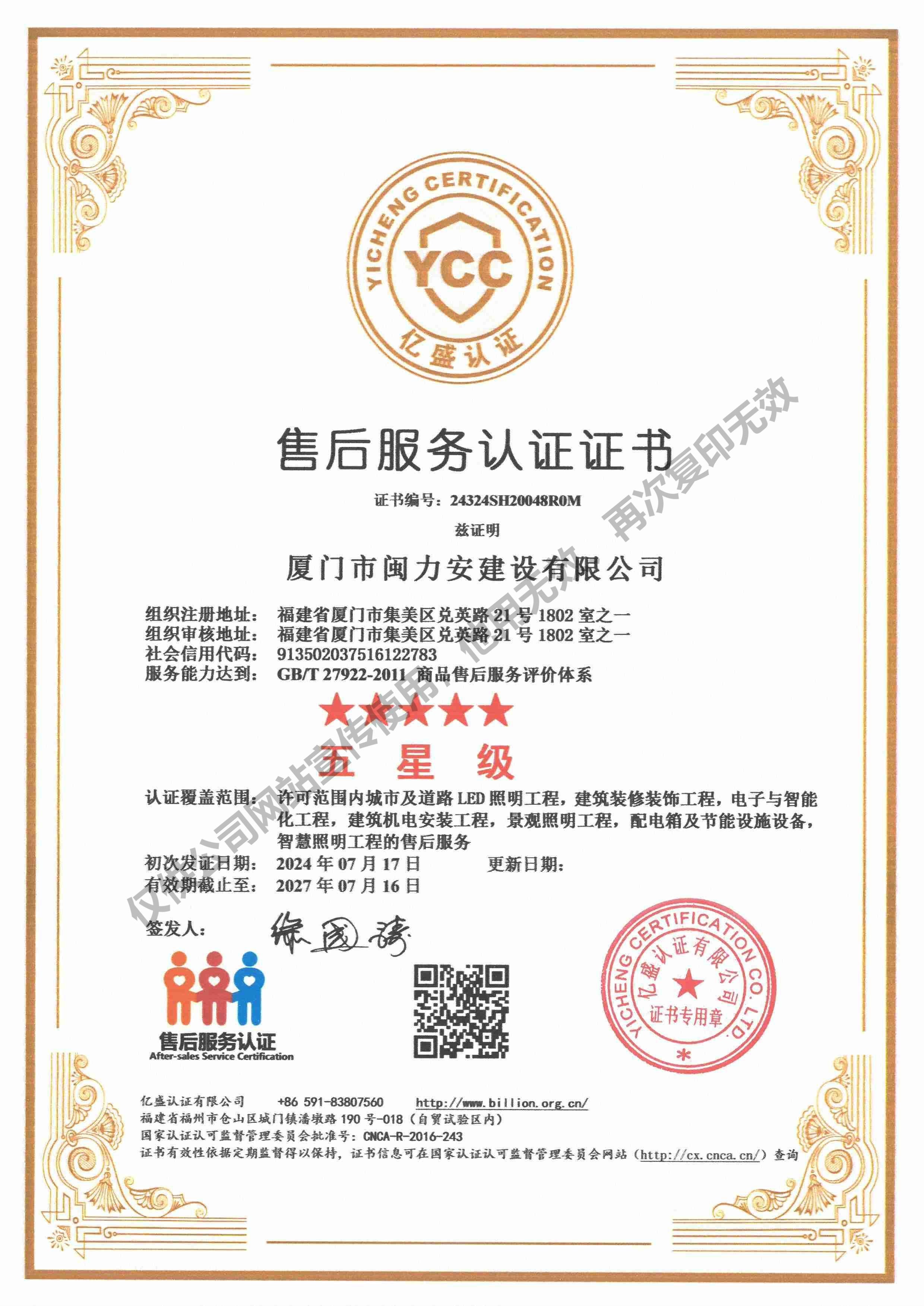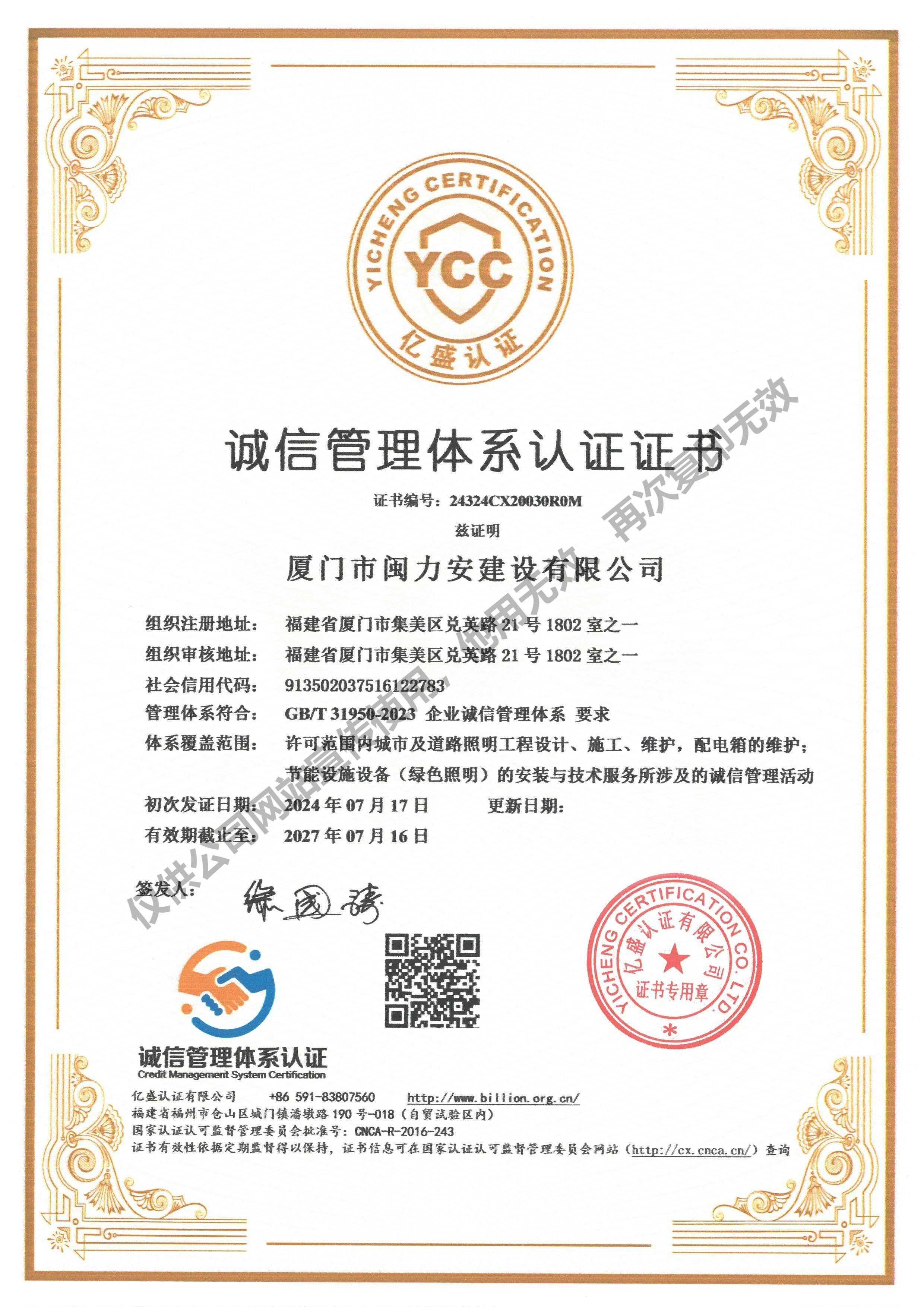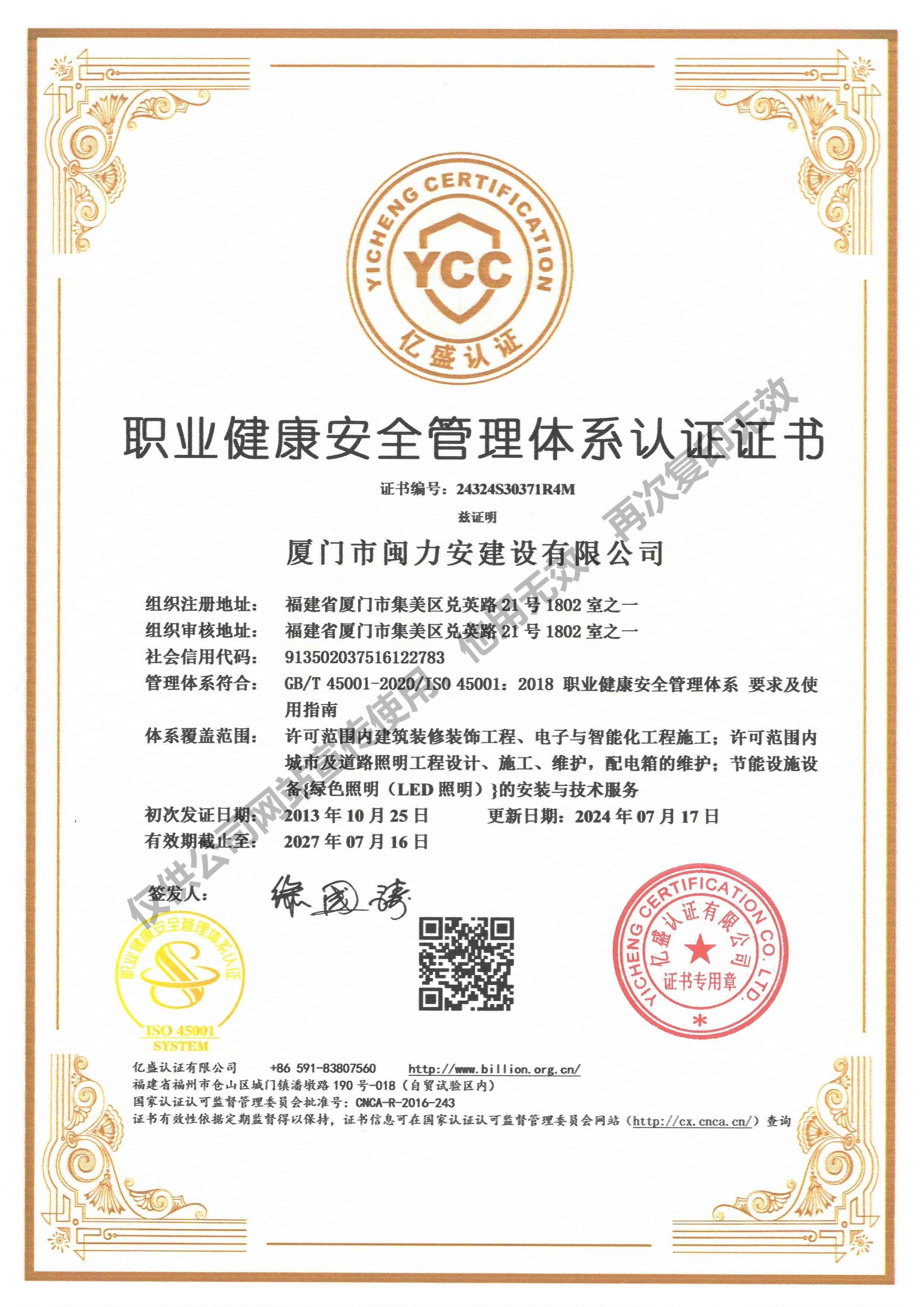 廈門(mén)市閩力安建設(shè)有限公司成立于2003年,公司取得市政公用工程施工總承包貳級(jí)、建筑裝修裝飾工程專業(yè)承包壹級(jí)、城市及道路照明工程專業(yè)承包壹級(jí)、電子與智能化工程專業(yè)承包貳級(jí)、消防設(shè)施工程專業(yè)承包貳級(jí)、電力工程施工總承包叁級(jí)、建筑機(jī)電安裝工程專業(yè)承包叁級(jí)、輸變電工程專業(yè)承包叁級(jí)、環(huán)保工程專業(yè)承包叁級(jí)、照明工程設(shè)計(jì)專項(xiàng)甲級(jí)、建筑裝飾工程設(shè)計(jì)乙級(jí)、施工勞務(wù)等資質(zhì)的綜合型企業(yè),公司于2013年通過(guò)了ISO9001質(zhì)量體系認(rèn)證,ISO14001環(huán)境管理體系認(rèn)證,OHSAS18001職業(yè)健康安全管理體系認(rèn)證。
